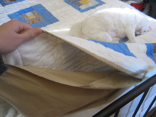Of course you can't put a new quilt out anywhere without this happening: