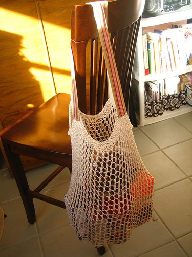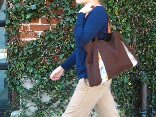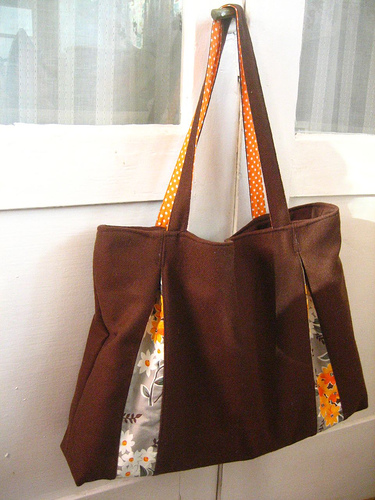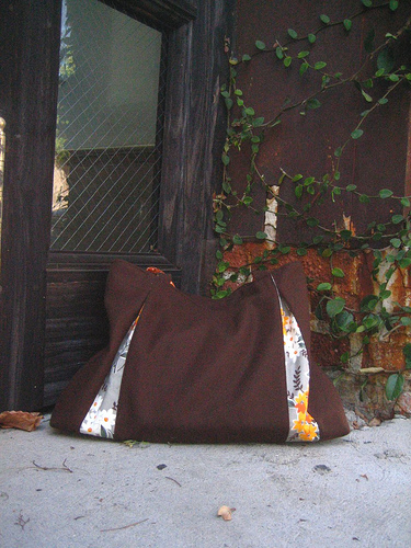 The "mother" is a (I think) McCall's pattern that I first used for a traveling bag last Spring. The "baby" is my own smaller version of the pattern that I had made for a much needed Summer purse.