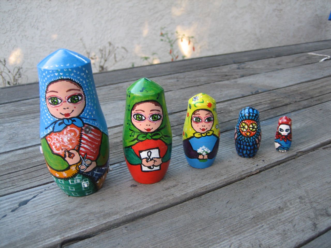 Next, these personallized nesting dolls painted by my friend Melissa! I was so excited to get these. It was so much fun opening them up for the first time. She really did a great job of picking out different themes that I would like. The first three even look like me! The first one is sewing, the second singing, the third holding a bunch of flowers, the fourth is a cute little owl (there are so many adorable, stylized owls and birds out there that I have developed a little obsession) and the last is a little Lillian! This one is by far my favorite. She's wearing a tiny babushka with fish bones all over it! So cute. The good news for those of you who I'm sure are very jealous of these dolls is that you can order your very own personalized set! Here at Melissa's Etsy shop you can order a set and give her all of the information she needs to paint them up for you or someone you think is in need of such a sweet gift.
