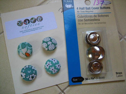 Some fabric covered buttons and a pack of the plain buttons that I can cover myself.