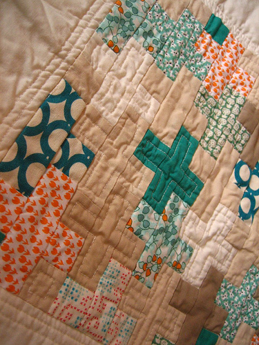 Poking around on the internet recently, I saw this quilt that would be mine, and I read Maritza's unsure ponderings over whether its recipient would like it or not. She didn't know if it suited my tastes and I didn't give too many specifics about what I wanted. (I believe all I said was "no batiks, no novelty prints") Then I read something that