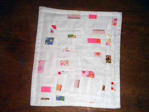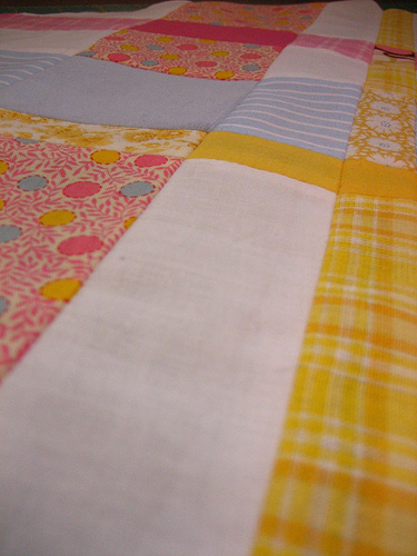 Poking around on the internet recently, I saw this quilt that would be mine, and I read Maritza's unsure ponderings over whether its recipient would like it or not. She didn't know if it suited my tastes and I didn't give too many specifics about what I wanted. (I believe all I said was "no batiks, no novelty prints") Then I read something that