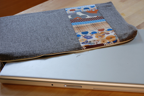 Instead of an entire bag for the laptop I made a little zip-up sleeve that will just slip right into my purse. Initially I planned to make a larger version of this DS case with a few improvements to the method of construction. It worked but I'm still not in love with the pattern.