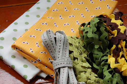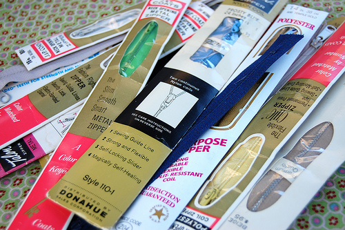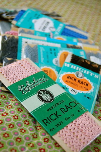 I also did a little low-end shopping and brought home an abundance of thrifted zippers and rick-rack, all for less than one yard of that velvet ribbon.