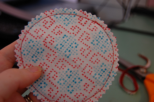 Use your pinking shears to trim the raw edge all the way around the circle, leaving about a quarter inch of fabric.