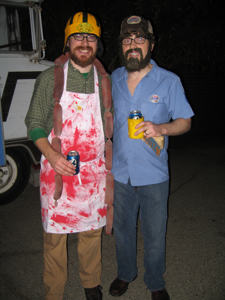 Imposter Harv (our friend Ethan) and genuine Harv.