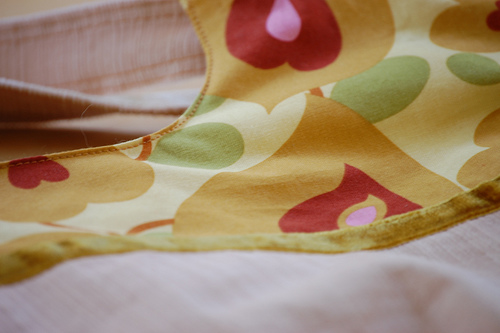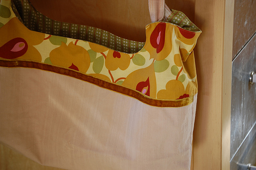 PS I made button holes in the lining to feed the handle through instead of making a casing. This is what I did before. Someone suggested it in the Bend The Rules Sewing Flickr group. I think it's a great idea.