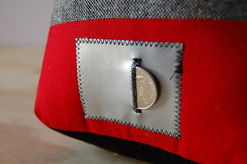 "Ethan!" doesn't have the great big coin "tunnel" with a zipper in the back like Pac-y did. Instead he has a petite little pocket on the front with a buttonhole.
