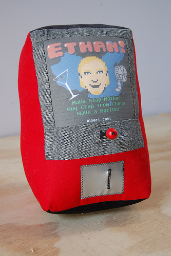returned Pac-y about a month after receiving him. Pac-y was too big and Ethan claims he was growing. So as a way of saying "job well done" I tried again with a smaller machine, this one featuring an as-of-yet undeveloped game called "Ethan!".