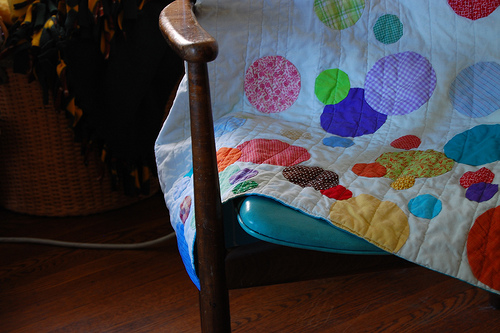 One of the reasons I didn't do this sooner is because I couldn't really think of a style of quilting that would work better than additional bubbles. Which is weird because once I came up with this straight lines idea, I liked it so much better! Maybe that's just my 2009 tastes compared to my 2007 tastes. Perhaps I'm less literal now.