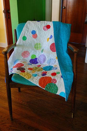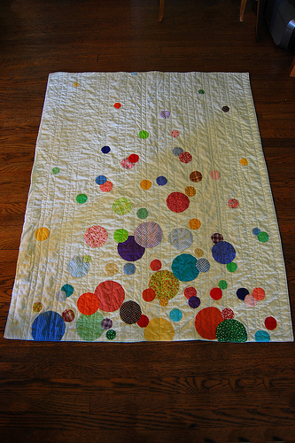 Third: Remember this guy? Probably not because I started it two and a half years ago. The plan was to hand quilt circles all over this mother. I worked on it some, my hand-quilting sucked. It wasn't fun. So it was put away.