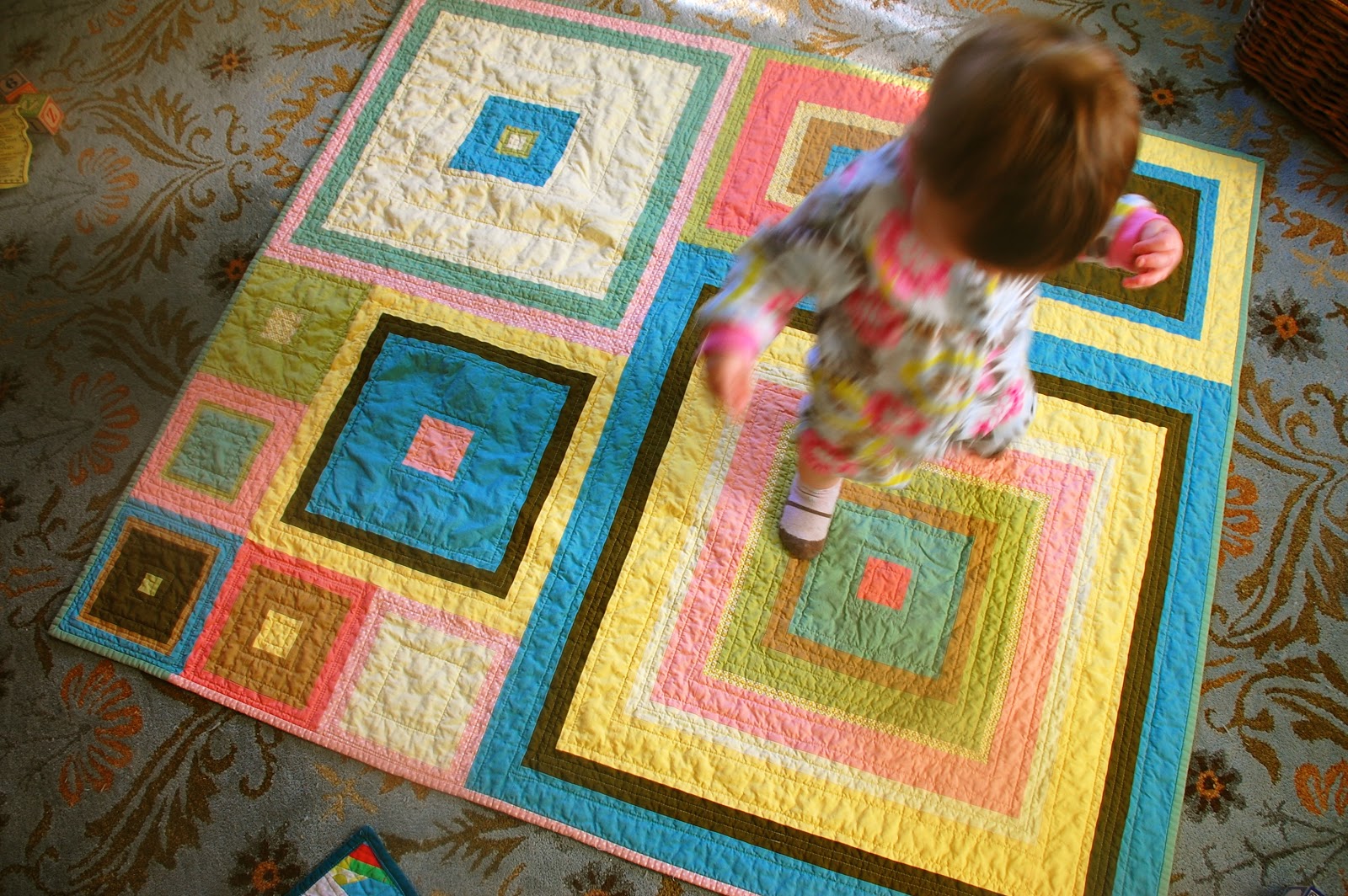 Hoo boy! Where have I been?! It drives me nuts when bloggers are constantly apologizing for not posting but it seems a little nuts to take an eight month break and not acknowledge it. Eight months indeed. But I'm here now, and I have things to show you! I may not have been blogging but I have been sewing, so I've got quite a back catalog to share. What's the statute of limitations on these things? Is that a thing? Is it tacky to share baby quilts that were given to babies who are now two and a half? I'm going to say no.