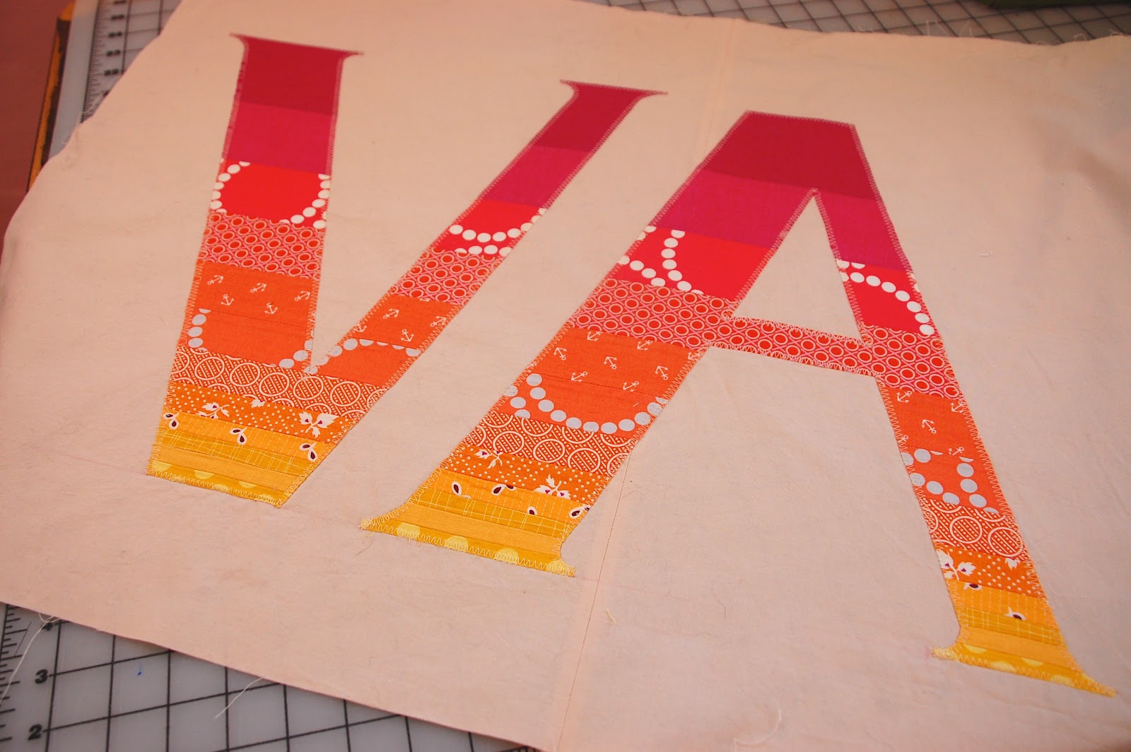 The VA is for my Virginia, not the state. I originally intended to turn this into a wall hanging but now I'm not so sure. I might turn it into a very simple quilt. Any ideas?