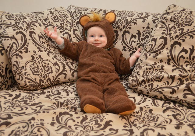 Both of these are Simplicity patterns though I don't have the numbers on hand. Ginny's was made exactly like the pattern. Teddy's was more for toddlers so I took in the smallest size. I also adjusted the placement of the ears a bit, made the ear linings smaller, added the tuft of hair and the little pads to the bottom of his feet. I also attached the feet to the onesie instead of having separate booties.