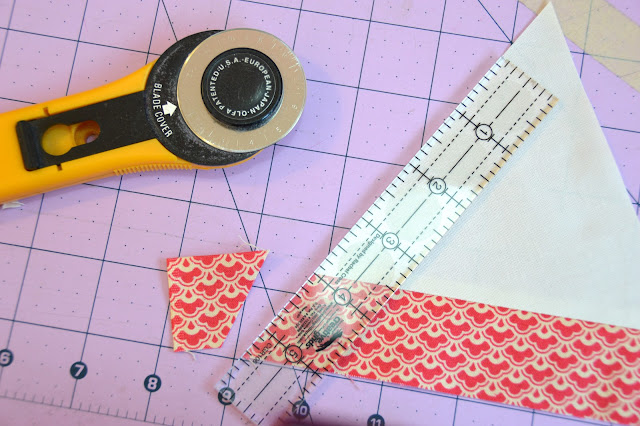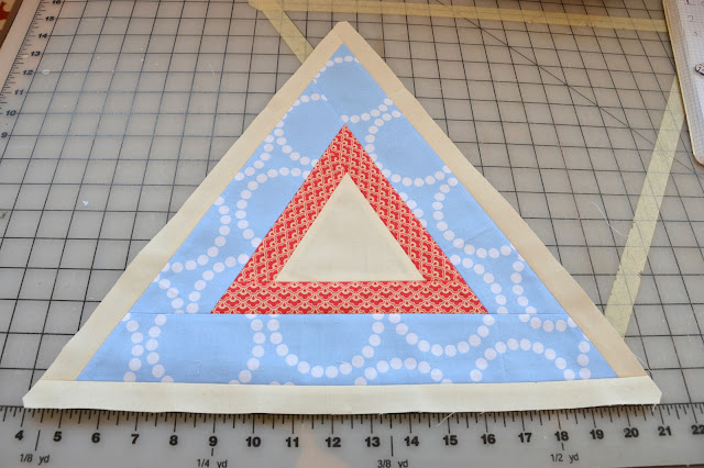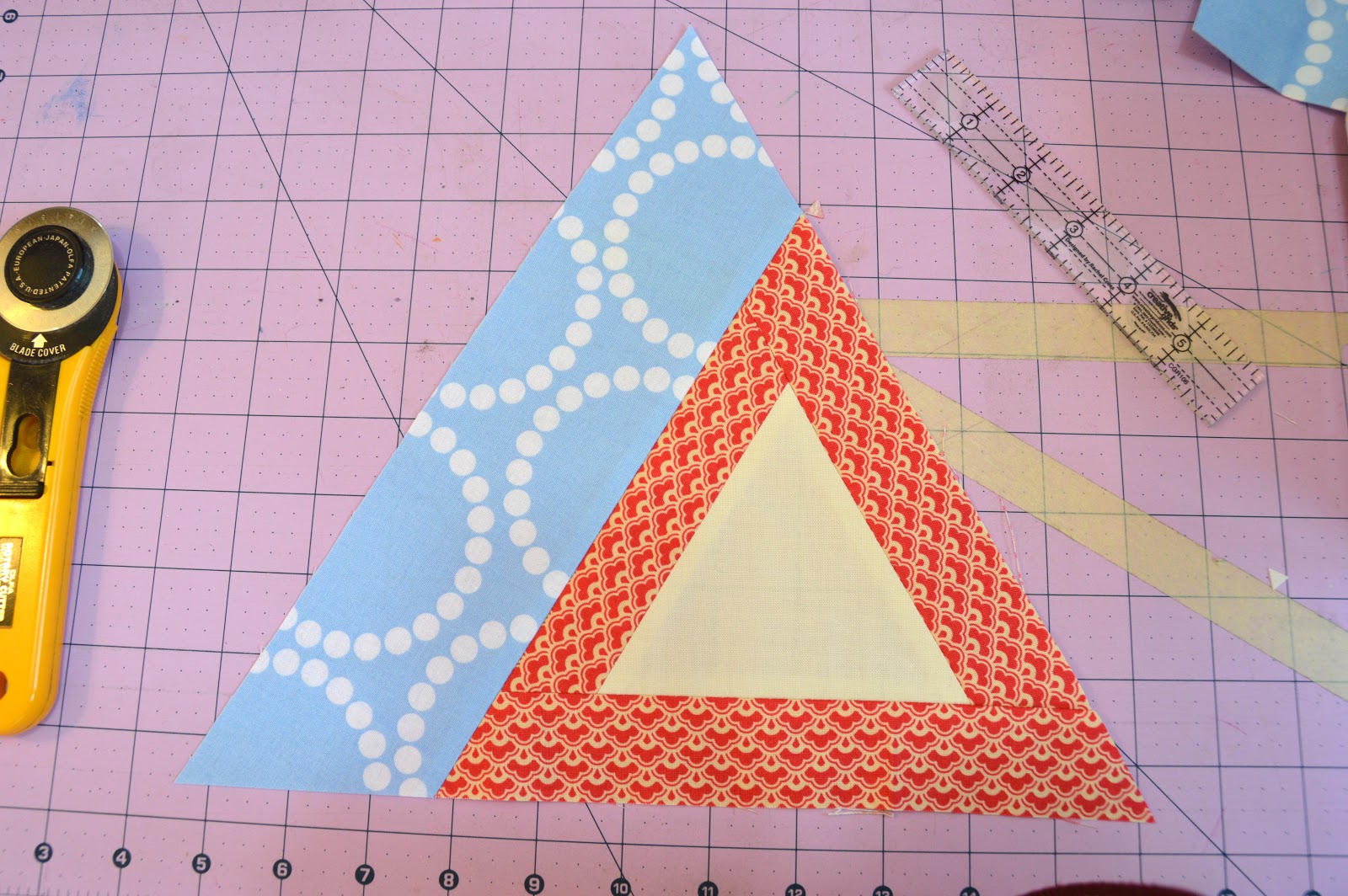 If this happens to you I recommend trimming the edges of the triangle (you can use your normal acrylic ruler lined up with the inner seams) and then adding a final round.