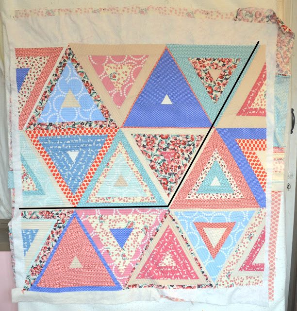 - The edges of the quilt are trimmed differently to avoid covering up chunks of your pyramids with binding.