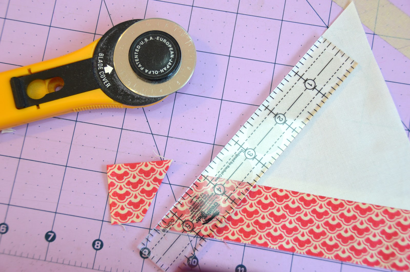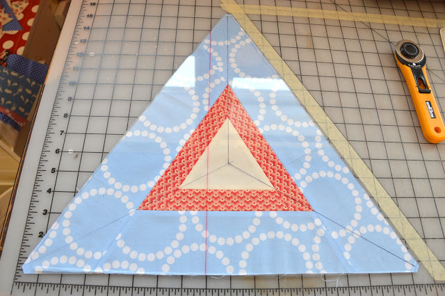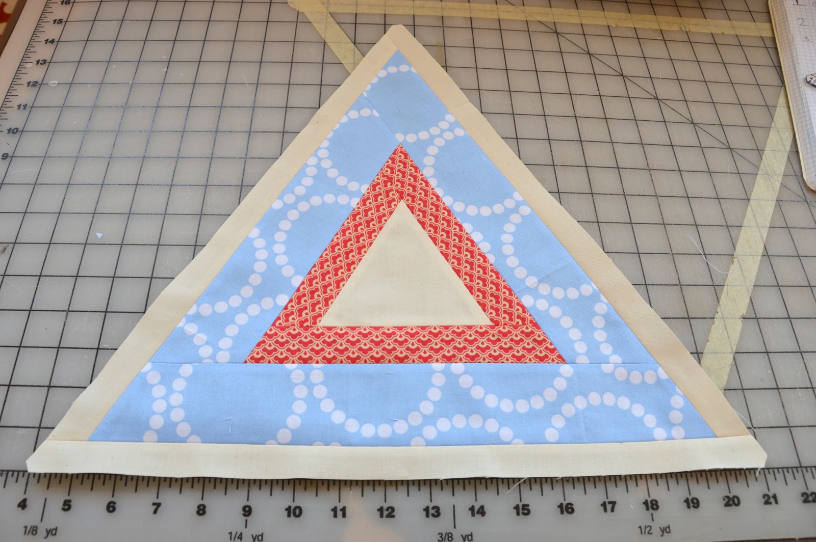If this happens to you I recommend trimming the edges of the triangle (you can use your normal acrylic ruler lined up with the inner seams) and then adding a final round.