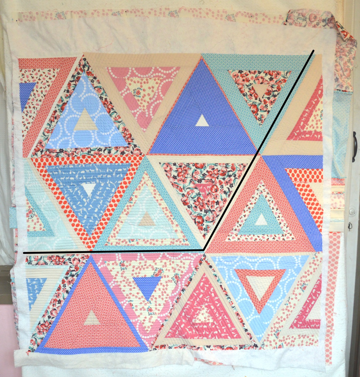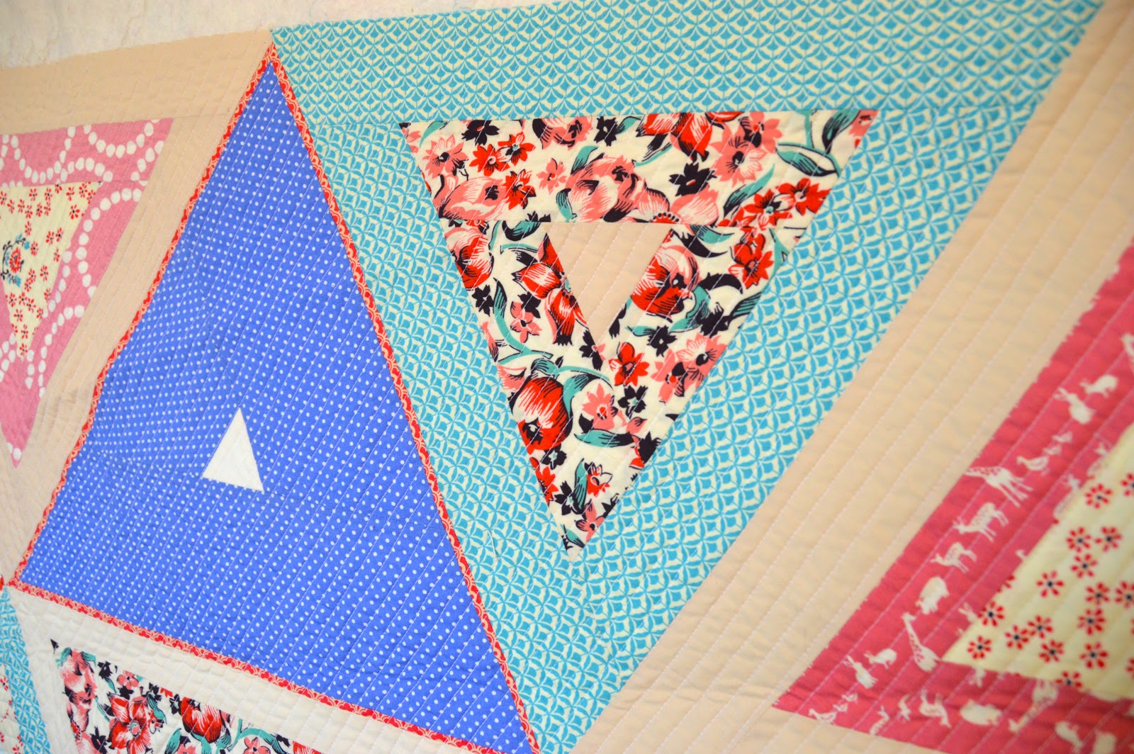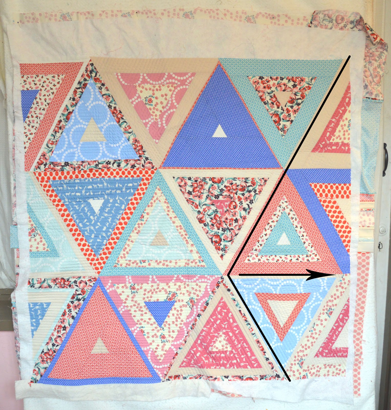 - The edges of the quilt are trimmed differently to avoid covering up chunks of your pyramids with binding.