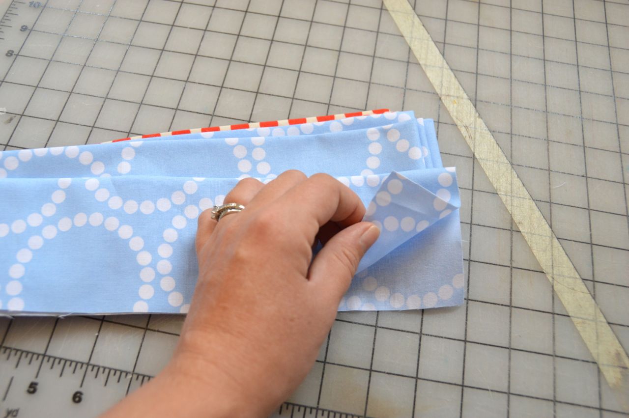 First you need to cut your binding. The strips should be 6.25" wide by the width of your fabric. Not sure how to calculate how many strips you need? Figure out the perimeter of your quilt by adding the width to the height and multiplying that number by two. Add twelve (to give yourself some wiggle room) and then divide by 40. You'll probably get a decimal so round your answer up to the next whole number. That is the number of strips you need.