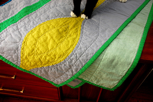 I have for you today, free of charge, a bonafide, whole-assed PDF quilt pattern, complete with color diagrams and all of the information you need to make your very own Leo Baby Quilt.